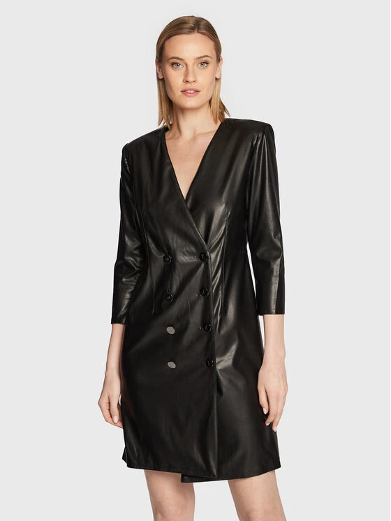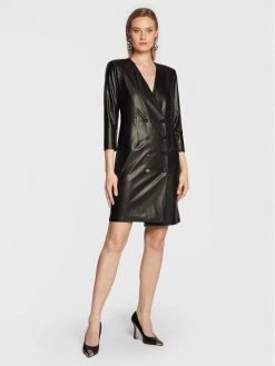 Το φθηνότερο 🤩 DKNY Γυναίκες Δερμάτινα Φορέματα Φόρεμα από απομίμηση δέρματος DD2G4325 Μαύρο Regular Fit 🎁