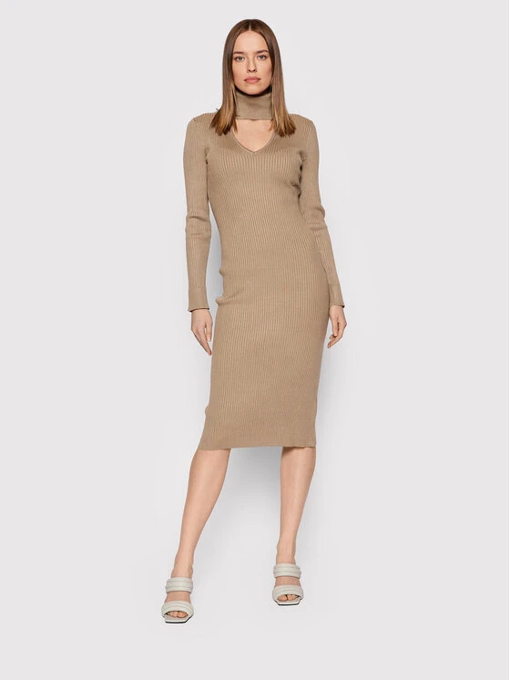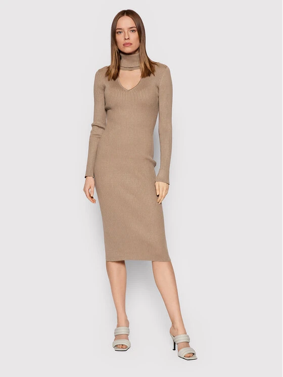 Εξοδος 🌟 DKNY Γυναίκες Πλεκτά Φορέματα Φόρεμα υφασμάτινο P1KUAPA0 Καφέ Slim Fit 🔔